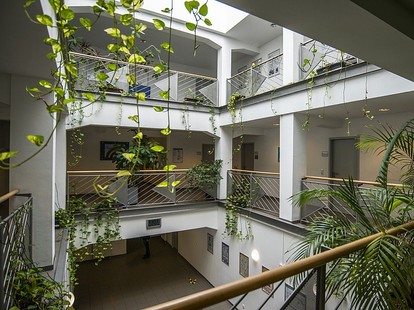 Den besonderen Reiz des großen Gebäudes machen die häufigen Begegnungen und stellenweise auch engen Kooperationen unter den Institutionen aus. Teilhabe am Arbeitsleben und auch Teilhabe in der Gesellschaft sind hier wichtige Grundlagen unserer Arbeit.
