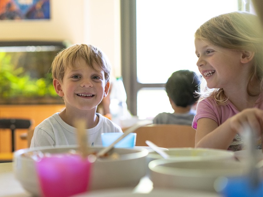 Unsere Kinder bringen ihr eigenes Frühstück mit und erhalten bei uns ein gesundes, abwechslungsreiches und warmes Mittagessen sowie ein Nachmittagssnack. Wir bieten stets eine ausgewogene und kindgerechte Verpflegung, außerdem stehen den ganzen Tag über ausreichend Getränke, sowie Obst und Gemüse zur Verfügung.