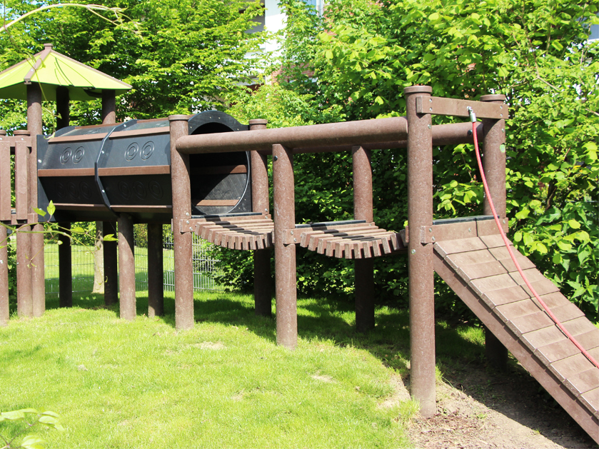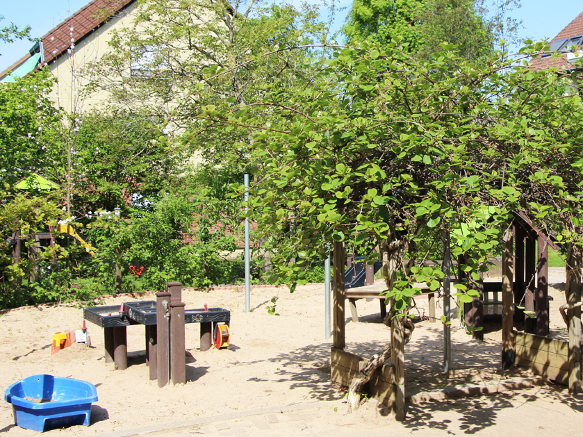 - Spielplatz: mit Sandbereich, Kletterturm , Schaukel, Wippe und Wasserbecken